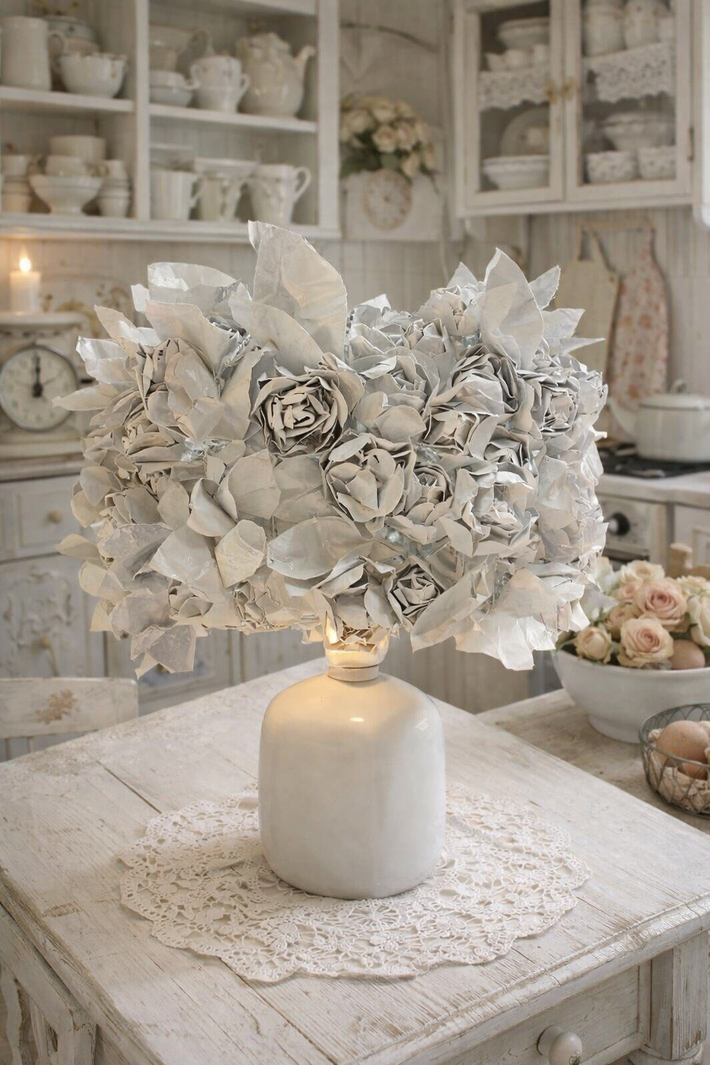 Flower pots enliven the atmosphere and add to the charming personality of this place. The integrated kitchen units in black provide an interesting contrast with the white walls.